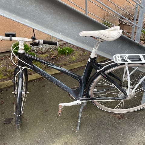 Den har skærme for og bag, støtteben og 7 gear.