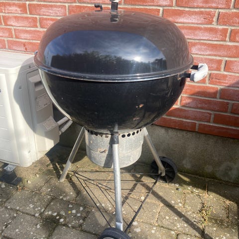 Weber kuglegrill i sort. Klassisk kulgrill med låg, luftventil i låget og rundt grillrist. Grillen står på tre ben, hvoraf to har hjul for nemmere flytning. Velegnet til almindelig udendørs madlavning på terrasse eller i have.