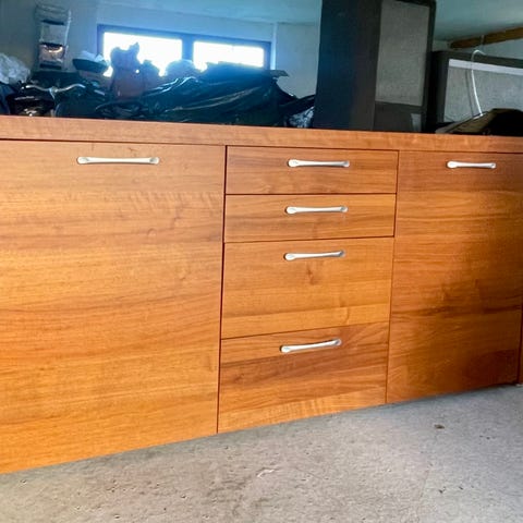 Flot, massiv og velholdt skænk. Tappet sammen. Står i klassisk design.