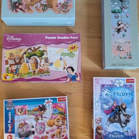 Blandet 5 puslespil til børn. 50 kr. for det hele.