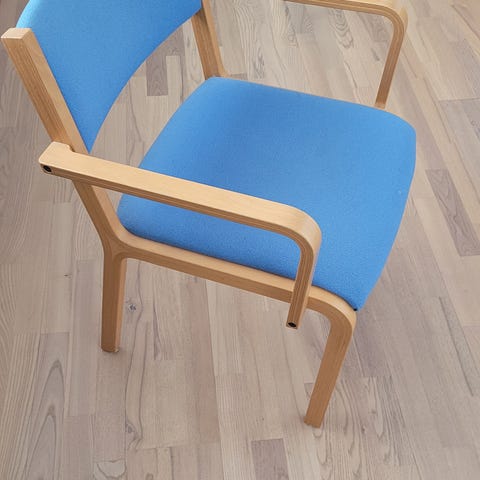 Fire super fine Magnus Olesen stole med lyseblåt uld og armlæn