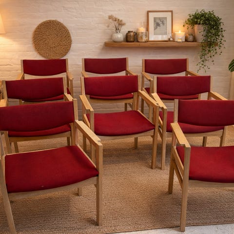 10 FDB stole fra 70'erne i massiv bøgetræ super populære tremmestol.