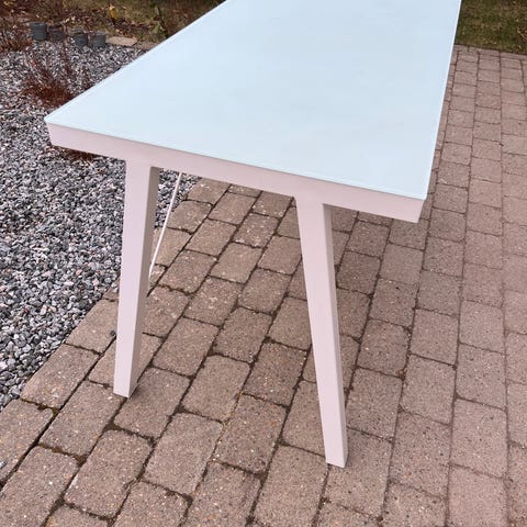 Ilva skrivebord med glasplade. Se billede til sidst for at se mærke på pladen.