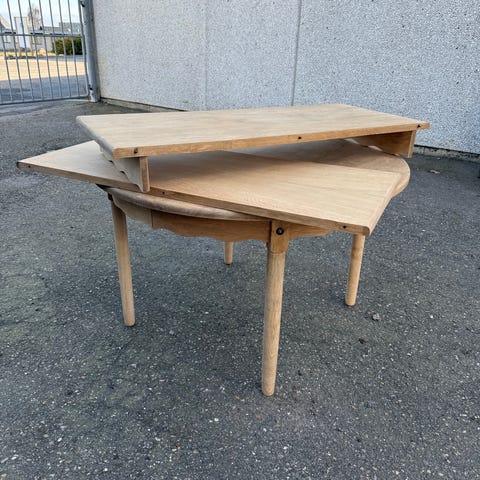 Flot rundt spisebord i egetræ med 2 tillægsplader