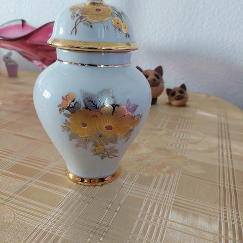 Porcelænskrukke med låg hvid med blomstermotiv