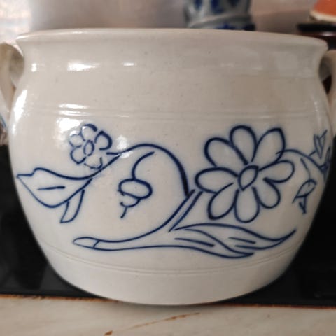 Keramik krukke med hank blågrå