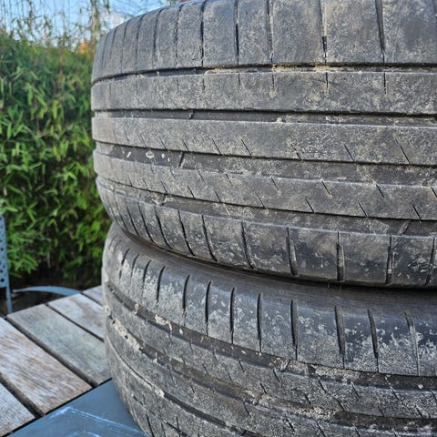 2 stk med ca 5 mm mønster tilbage har siddet på en Tesla 3 fra 2023