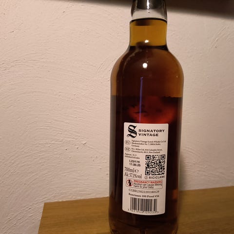 8 års Tullibardine Single Malt Whisky. Udvalgt og tappet af Signatory Vintage ved Cask Strength 57,1%. Lagret på 1. fill Oloroso Sherry fade. Ikke kølefiltreret eller tilsat farve.