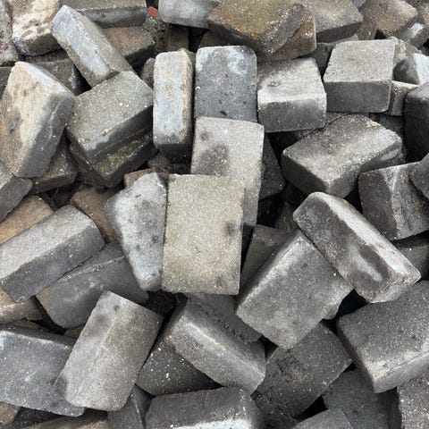 Gammelgårdssten -fra Farum beton 21 x 14 x 5,5 cm: ca. 1250 stk. lyse grå (Palermo) og ca. 250 stk. sorte.
