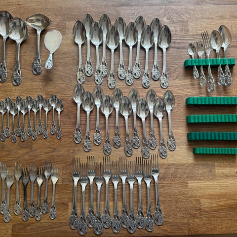 8 skeer, 8 gafler ,8 knive og 8 dessert skeer i alt 32 dele