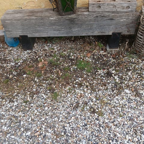 Gammel vaskehus bænk/tremmebænk/Plantebænk/Vaskebænk/Blomsterbænk i patineret fyrretræ med galvaniseret stål stel.