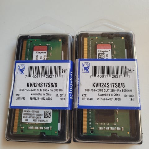 Kingston, 2 x 8gb, anden RAM-teknologi, anden modeltype, Perfekt, Helt nye