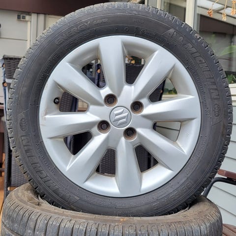 Boltmønster og centerhul kender jeg ikke præcist, da dækkene sidder på fælgene, men de passer til fx Suzuki Liana.