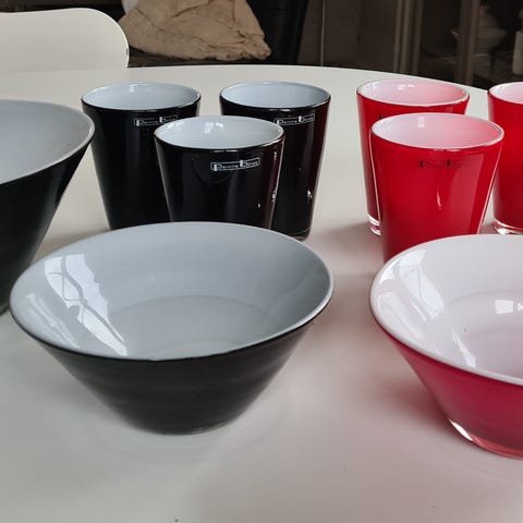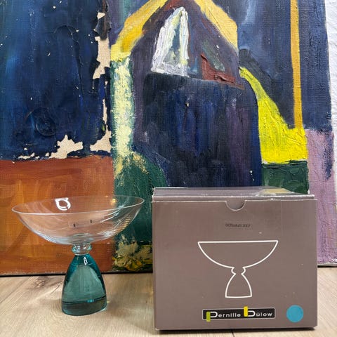 Aldrig brugt. Der er et lille indhak i håndtaget på kanden (se billedet). Men det er ikke skarpt, så jeg tror det er fordi det er mundblæst.
