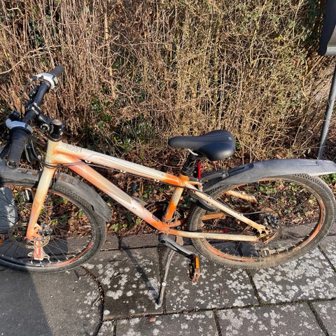 SCO cykel med 24 tommers hjul og mekaniske skivebremser og 7 gir. Sælges billigt da poden skal have ny cykel. Alt fungerer. Næsten nye dæk og slanger.