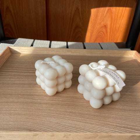 Candle Copenhagen sojalys, 2 stk twirled. Højden er ca. 11 og 15 cm. Købt for nogle år tilbage og har erfaring med at lysene fra dengang (de sælges i en opdateret version nu) brænder dårligt. Men de er rigtig fine at have stående til pynt. Aldrig brugt. Nypris: 258kr