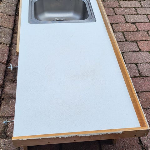 God solid bordplade i laminat + vask og armatur sælges.