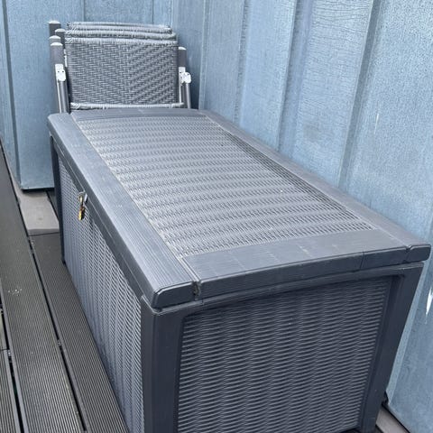 Fremstillet af højkvalitets resin plastic, som er kendt for sin holdbarhed og modstandsdygtighed over for vejrets påvirkninger. Denne kiste vil ikke ruste, falme eller skalle, hvilket sikrer langvarig brug.