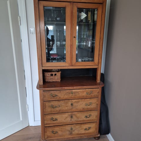 Vitrineskab i træ med glaslåger