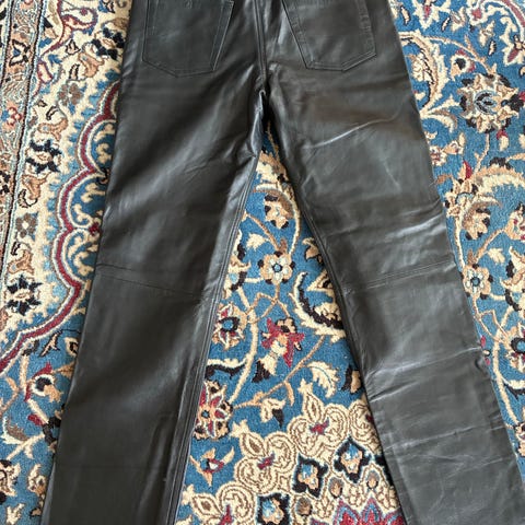 Sorte læderbukser – lav talje / hoftepasform – str. S–M
