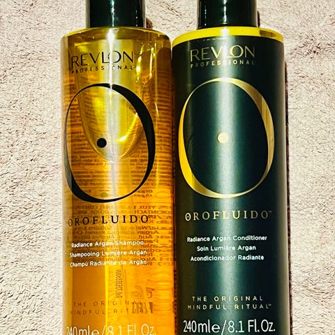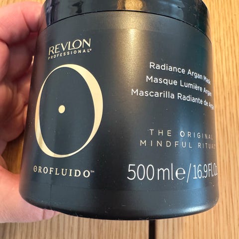 Revlon Orofluido Radiance Argan Mask hårkur med 500 ml indhold. Hårmasken er en arganbaseret kur, der anvendes i håret efter hårvask. Produktet fordeles i længder og spidser og skylles ud efter virketid i henhold til anvisningen på emballagen. Velegnet til pleje af forskellige hårtyper. Beholder i plastkrukke med skruelåg.