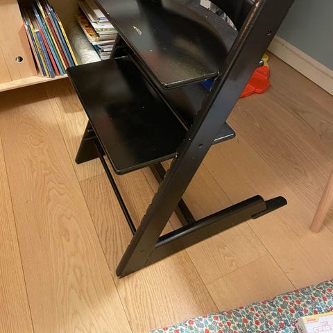 Stokke højstol sort træ, trip trap stol