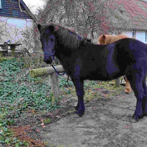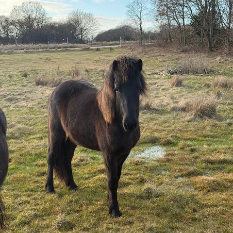 Prins er halv fjordhest og halv islænder, bliver 8 år til maj og måler 140 cm i stang.