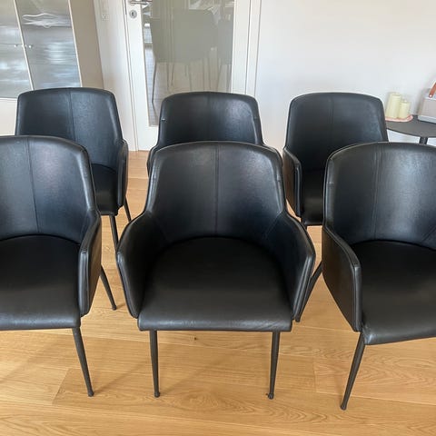 Høj slank læderstole fra Virer uden armlæn; prisen er for begge stole.