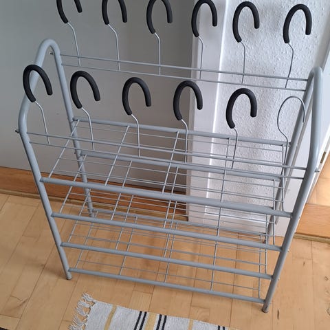 4 stk sko udtræk med 3 hylder hver og plads til 9 par sko per reol.