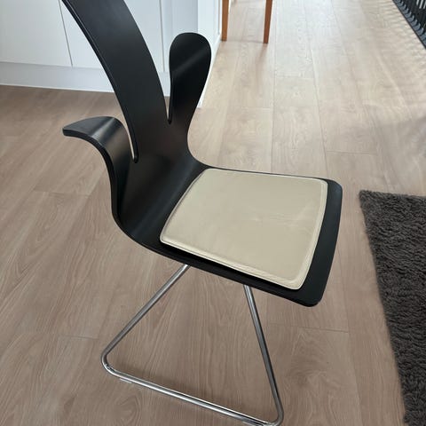 Sorte læderstole med træarmlæn fra Gramrode Møbelfabrik; prisen er for begge stole.