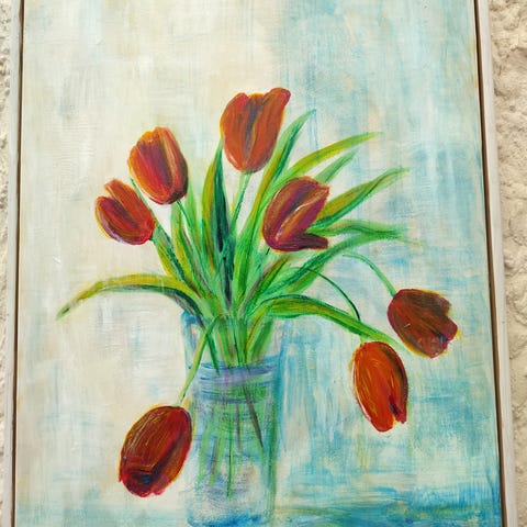 Stil: Kunstværket har en klassisk, botanisk stil i blålige nuancer.