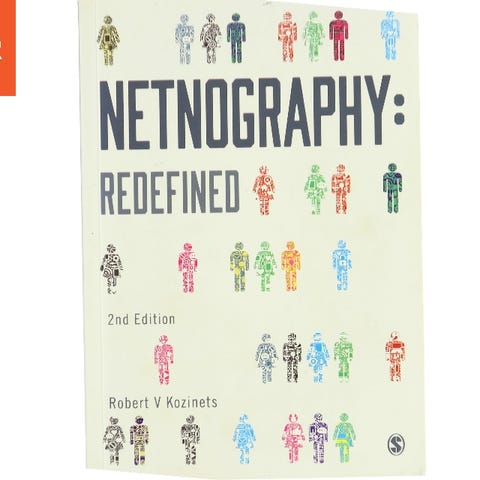 Robert V. Kozinets Netnography bog omhandler metoder til etnografisk forskning online. Bogen indeholder teoretiske og praktiske tilgange til at forstå og analysere digitale fællesskaber og sociale netværk.