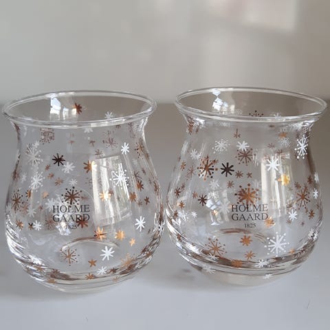 ⭐️🌟❄️🕯🕯 STAR 2 stk Lyslygte Fyrfad Sæt Glaspuster Romme HOLMEGAARD
