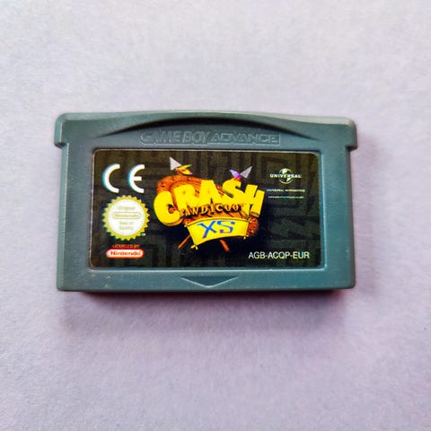 Nintendo Game Boy Advance spil Crash of the Titans. Action- og platformspil i Crash Bandicoot-serien til Game Boy Advance håndholdt konsol. Spillet er PEGI 7+ og leveres i fysisk æske med spilcartridge til brug på kompatible Game Boy Advance systemer, herunder visse Nintendo DS-modeller med Game Boy Advance-slot.