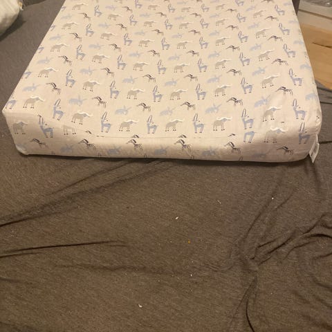 Vandafvisende og aftagelig betræk. L:65cm B:50cm H:10cm(sider). Se også annonce på puslebord.
