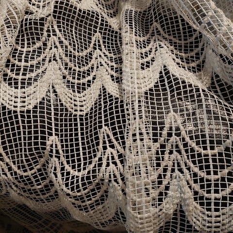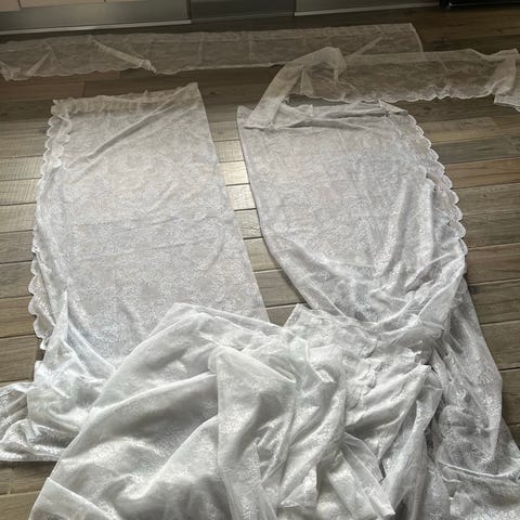super flot blonder mønster gardiner er gennemsigtigt hvid/creme farve str. i alt H.113 x B. 134 cm. kan hentes for 70 kr. fremstillet af blonder materiale, er dette produkt slidstærkt og dekorativt. fejler intet, sendes gerne privat.