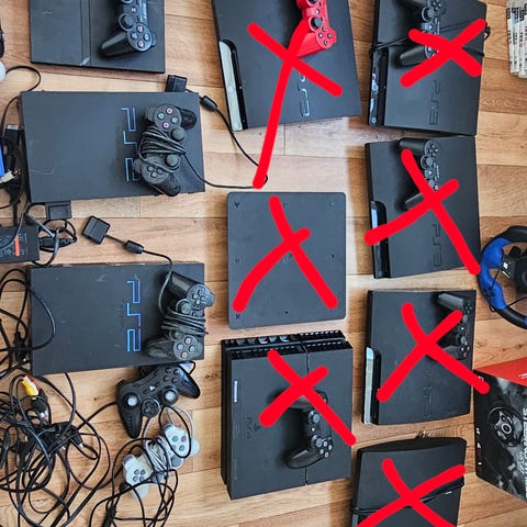 Alle konsoller kommer komplette med ledninger, memorycard og det der hører til udover wii (har ikke en)