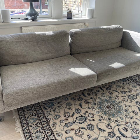 Pæn og komfortabel 3-personers sofa i gråt stof sælges.