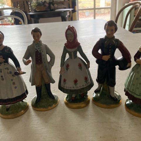 Figur med to piger i folkedragt porcelænsfigur flerfarvet