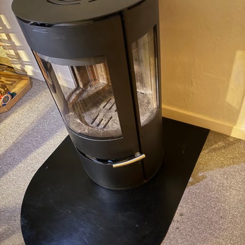 Aduro hybrid ovn som er til både træpiller og brænde - Den er sjældent brugt da den har stået i sommerhus. Den er tilovers fra projekt.