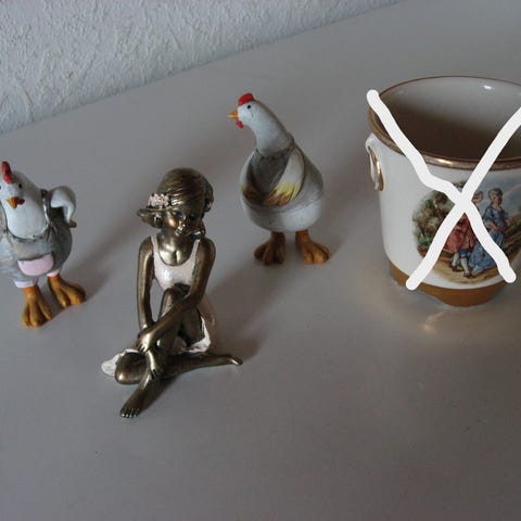 Porcelænsfigurer formet som to måger i liggende/flyvende position. Figurerne er overvejende hvide med brune hoveder og næb samt mørke detaljer på vingerne. Egnede som dekoration på hylde, reol eller bord, fx i stue eller sommerhus. Sælges som sæt med to fuglefigurer.