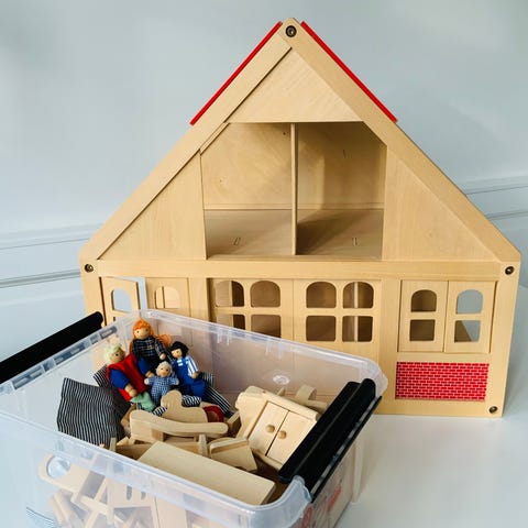Dukkehus i træ m. tilbehør
