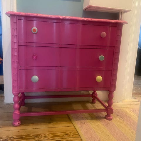 Kommode i afsyret træ med skuffer med porcelænsgreb