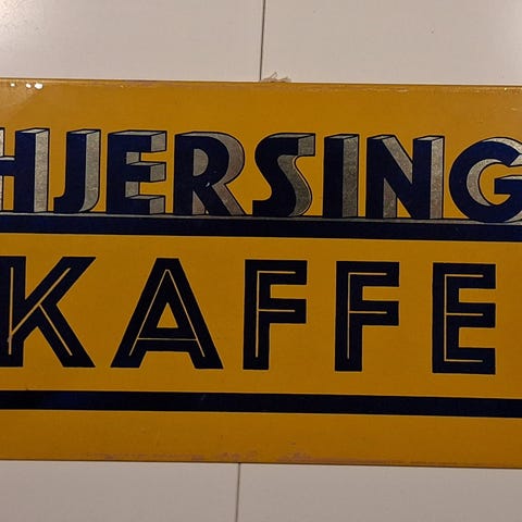 Ældre blikskilt med Hjerting Kaffe.