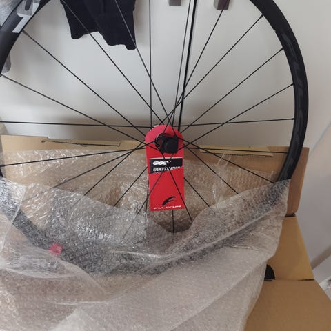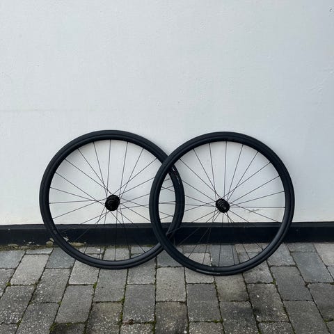 Hjulene har kørt ca. 3000 km. og har noget tubeless rester + nogle små ridser på klistermærkerne.