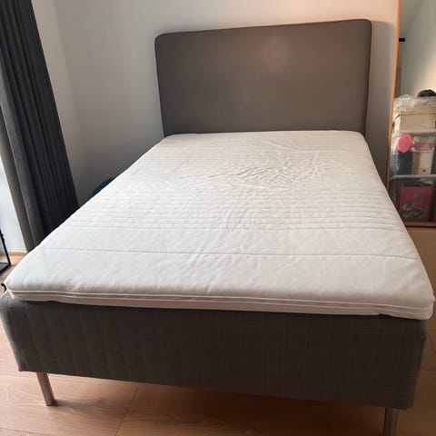 Dobbeltseng (160cm x 200 cm) inkl topmadras. Sengen er ret ny, men topmadrassen er brugt.