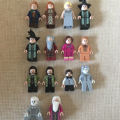 Seks forskellige figurer af Harry Potter, Hermione Granger og Ron Weasley.