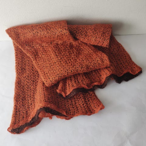 Lille slidmærke ved mærke samt frynser er lidt filtret og et enkelt sted lille revne se evt. billeder.