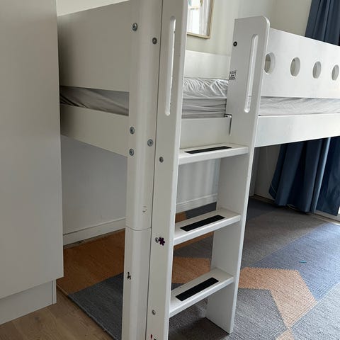 Seng sælges , kan laves til en lav seng. Ned under er der en god plads til leg og hygge, legetøj kan også opbevares fint under sengen.