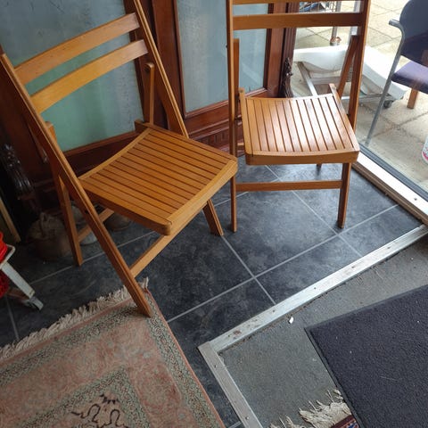 Klapstole i træ, sælges samlet.